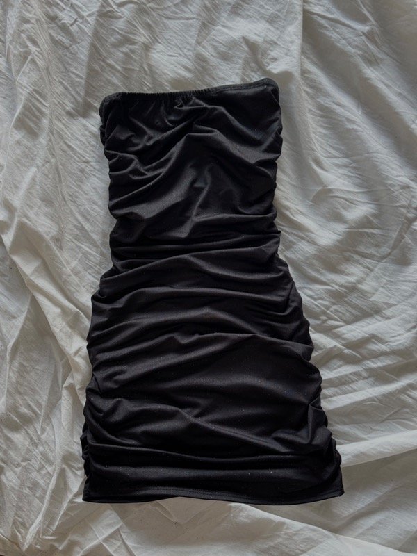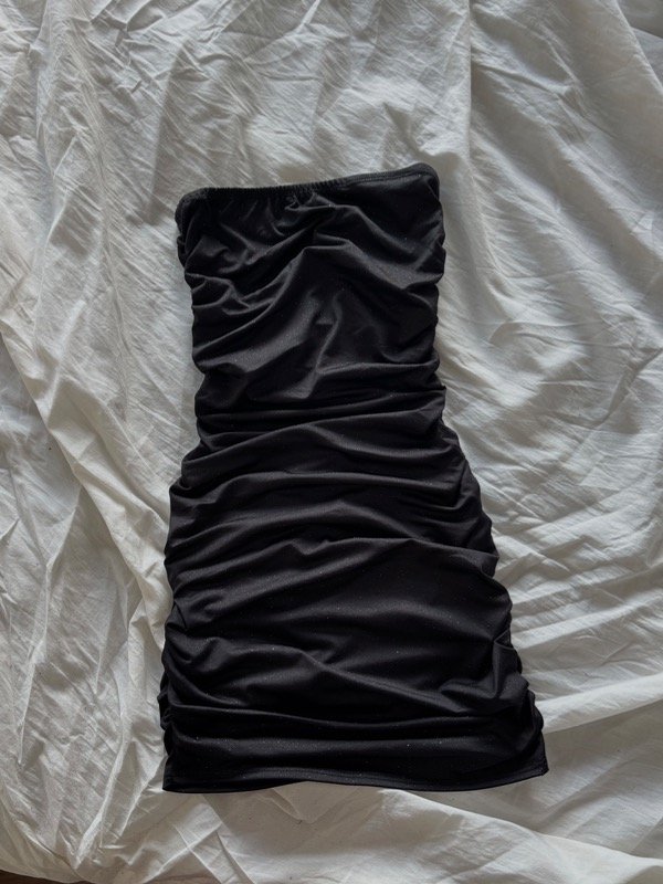 Id551. Vestido Straples Microfibra brillos